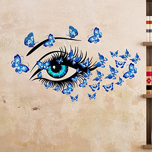 -. Title : Amaonm Removable DIY Creative 3D Beautiful Girl Blue Eyes & Flying Butterfly Wall Decals PVC Home wall Stickers Murals Decorative Home Decor Bedroom Decorations art Decal Nursery Room Stickers