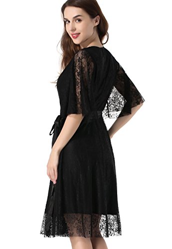 Women's Elegant Half Sleeve Floral Lace Vintage Midi Cocktail Party Dress Black Small