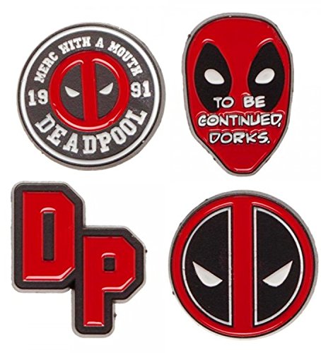 Product DescriptionMarvel Comics Deadpool 1″ Wide Metal Enamel Costume Set of 4 Pins0