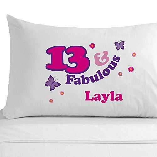 (hiusan)/Bedding Bath/Bedding/DIRECT FROM USA/Personalized 13 And Fabulous Pillowcases White Cotton Zipper Pillow Cases Decorative Girl Bedro...