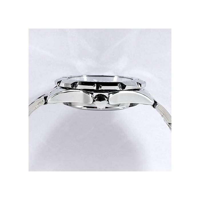 직경 약38mm에 두께 약12mm의 약간 소무늬의 케이스에 스테인레스 밴드가 폭약18mm의 손목시계(팔 주위=약18mm)