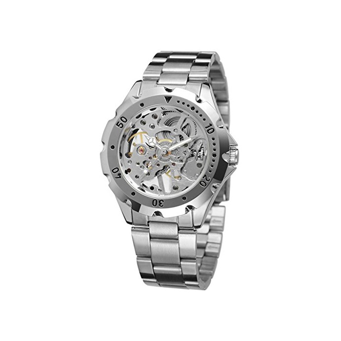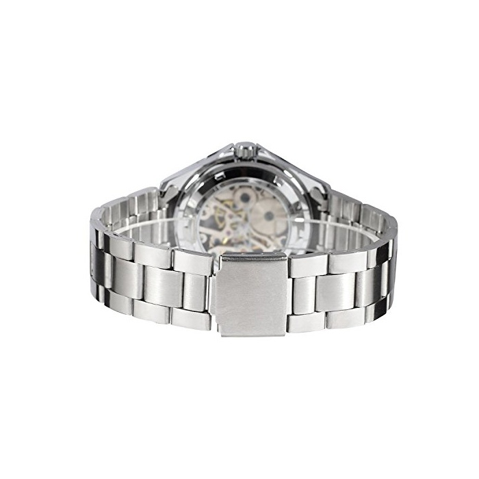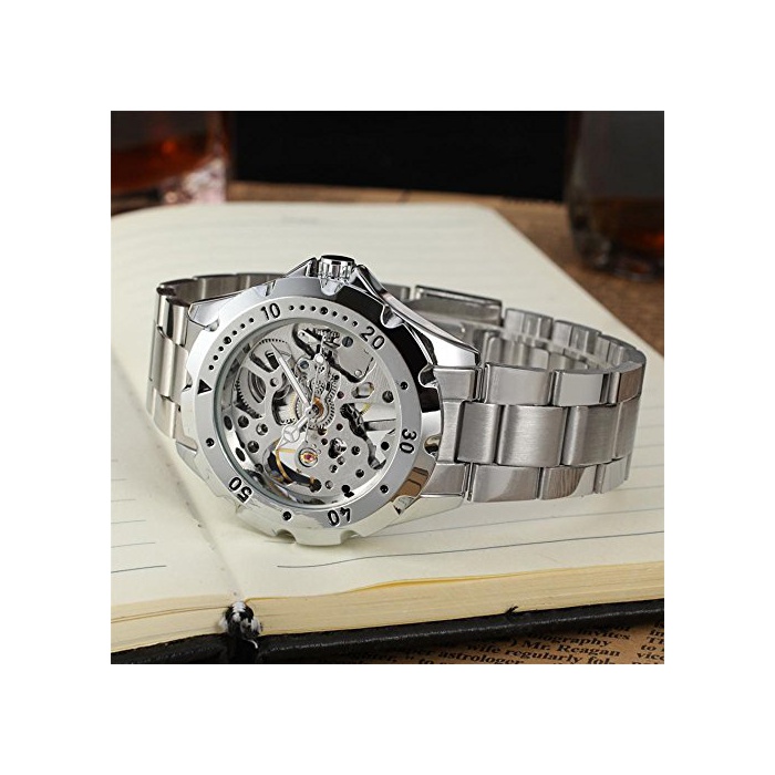 GuTe Mechanical GuTe출품 스켈리턴 맨즈 기계식 스테인레스 밴드 태엽 손목시계 앤틱풍 실버