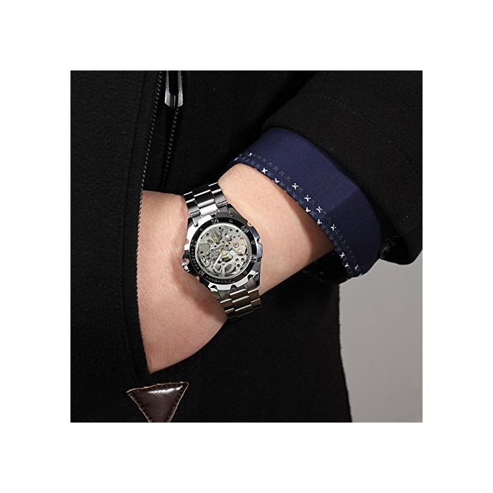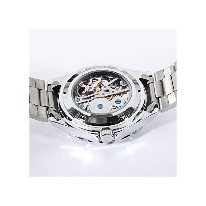 원본상품명:GuTe出品 スケルトン メンズ 機械式 ステンレスバンド 手き 腕時計 アンティク風 シルバ