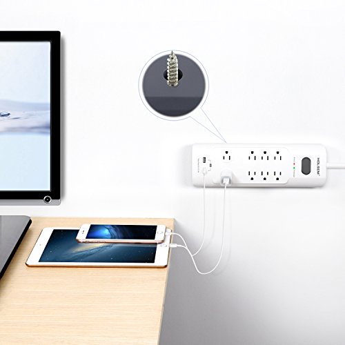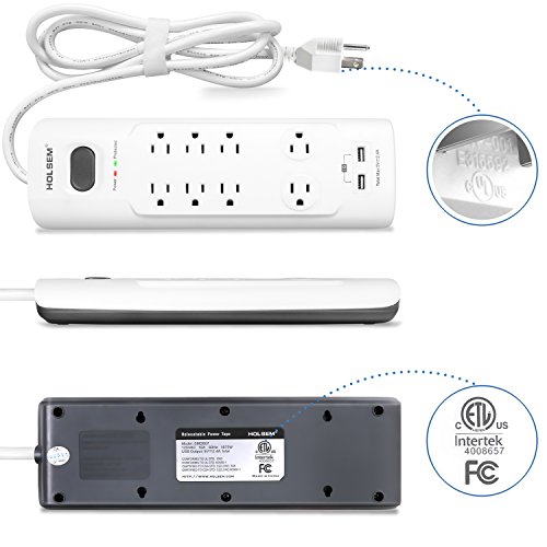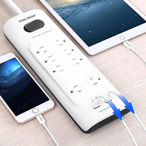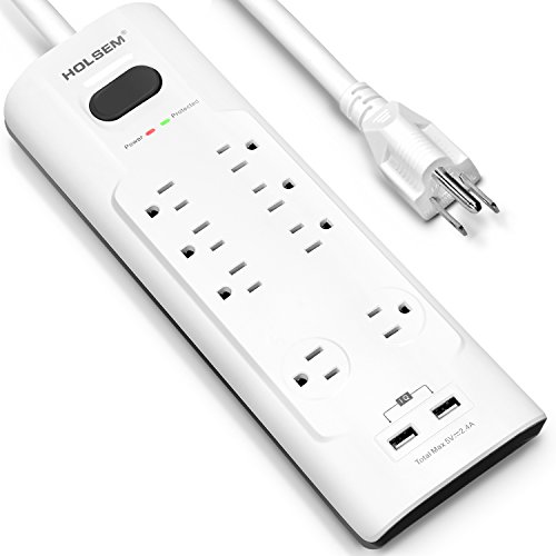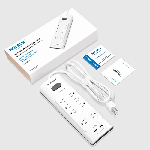 HOLSEM Power Strip Surge Protector 8 Outlets & 2 Smart USB Charging Ports (5V/2.4A), 6' Heavy Duty Extension Cord, USB Outlet for Home & Office ,White