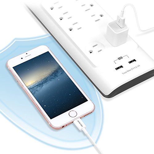 - 8 x AC outlets and 2 x USB ports surge protector with 6 ft extension cord ideal for home office and professional workstations. 2000 joule energy rating is ideal for computers, laser printers, telephones, and home-theater systems