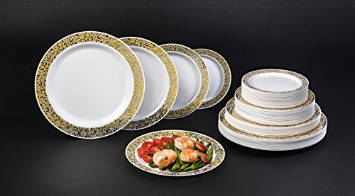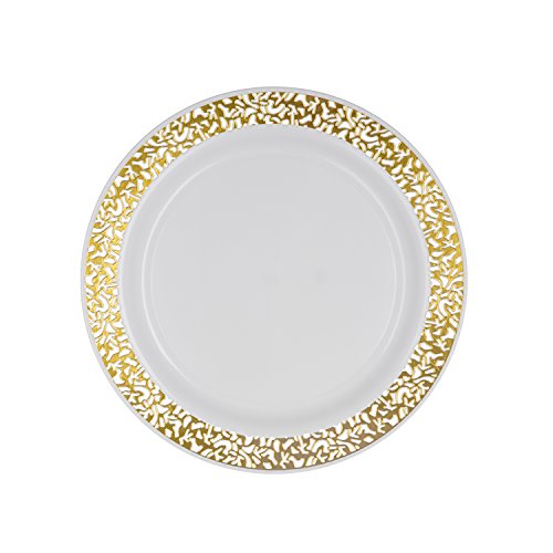 - High quality Divine Dinnerware plates feature a shimmering gold lace pattern on the rims