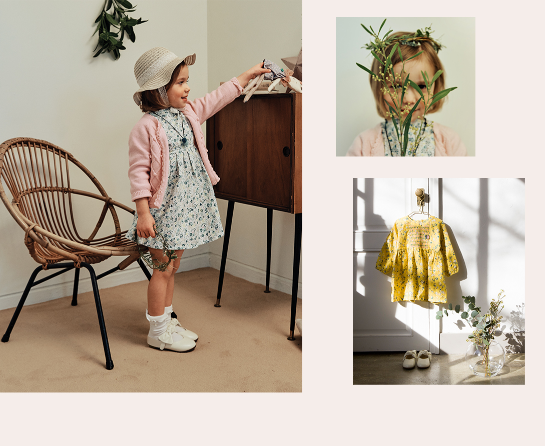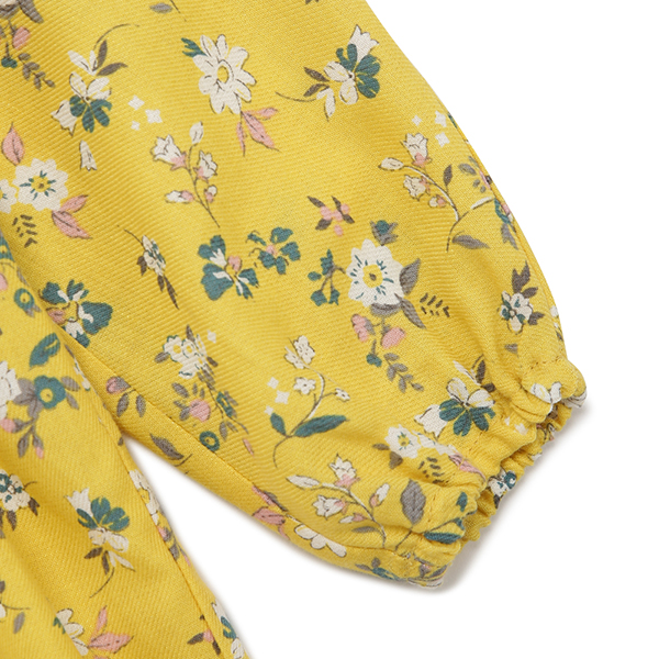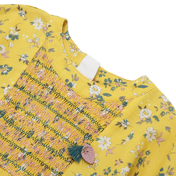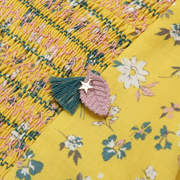 옐로우 바탕에 핑크와 그린칼라를 믹스하여 사용하였고, 터킹 디테일이 강조된 아이템입니다.