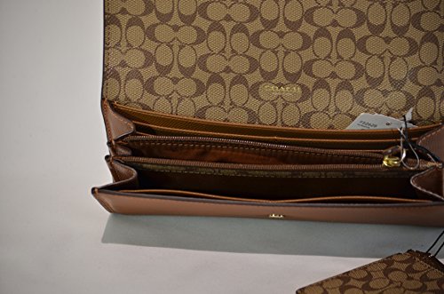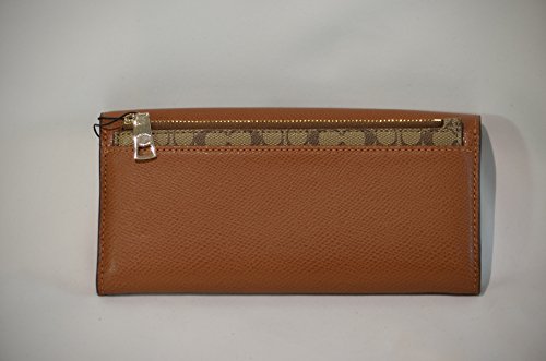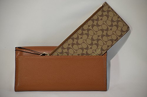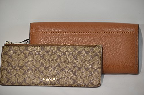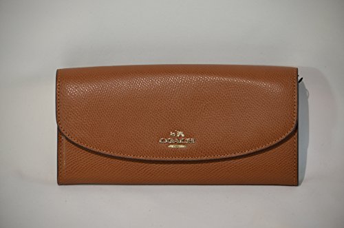 COACH CROSSGRAIN LEATHER PULL-OUT-POUCH SMALL ENVELOPE WALLET GOLDTONE SADDLE F52628IMSAD