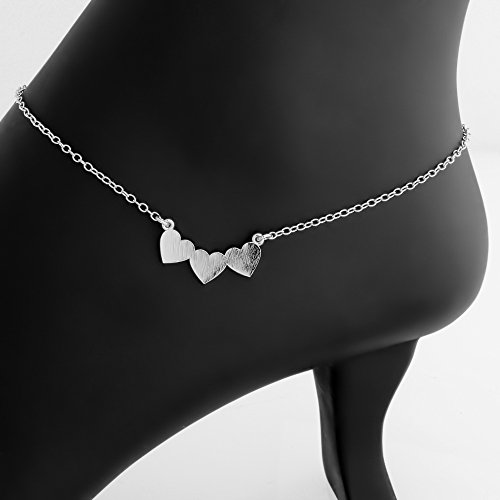 -. Title : Azaggi Sterling Silver Handcrafted 3 Solid Hearts Anklet