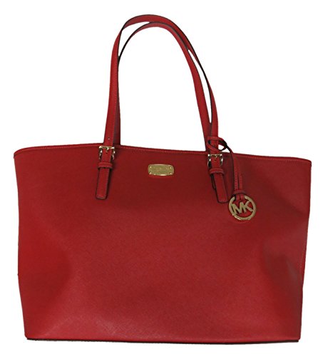 -. Title : Leather Jet Set Large Carryall Travel Tote Red