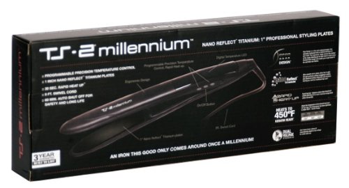 The TS-2 Millenium Flat Iron has a unique, contoured design that allows for handling ease and control. It enables you to get very close to the scalp and nape of the neck for greater styling. Its lightweight materials make the iron simple to use and minimizes wrist strain. Its versatile shape allows for endless styling options. Not only can it create a variety of straight looks, its design makes curling and adding body easy as well.
