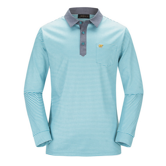 - 비비드한 컬러 스트라이프 패턴을 매치한 남성 티셔츠.