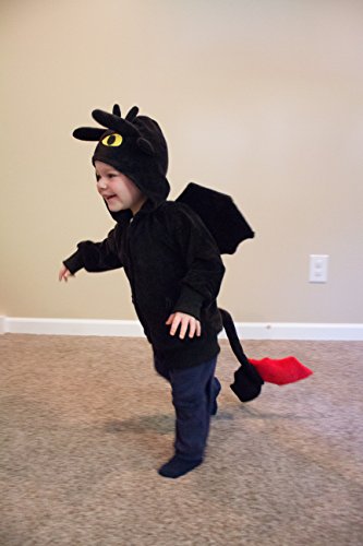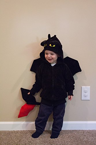 -. Brand : Unknown -. Color : Black -. Department : boys -. Feature : The perfect Halloween Costumes for your toddler, kid, or infant boy or girl / Fly around the sky in this Toothless costume hoodie / The most adorable Dragon Costume around. Don't trip on the tail! -. MPN : 1-COS-DDP -. PackageQuantity : 1 -. PartNumber : 1-COS-DDP -. ProductGroup : Apparel -. ProductTypeName : CHILDRENS_COSTUME -. Title : Handmade Comfy Clothing Kids Dragon Costume Hoodie Sweatshirt (High Quality)