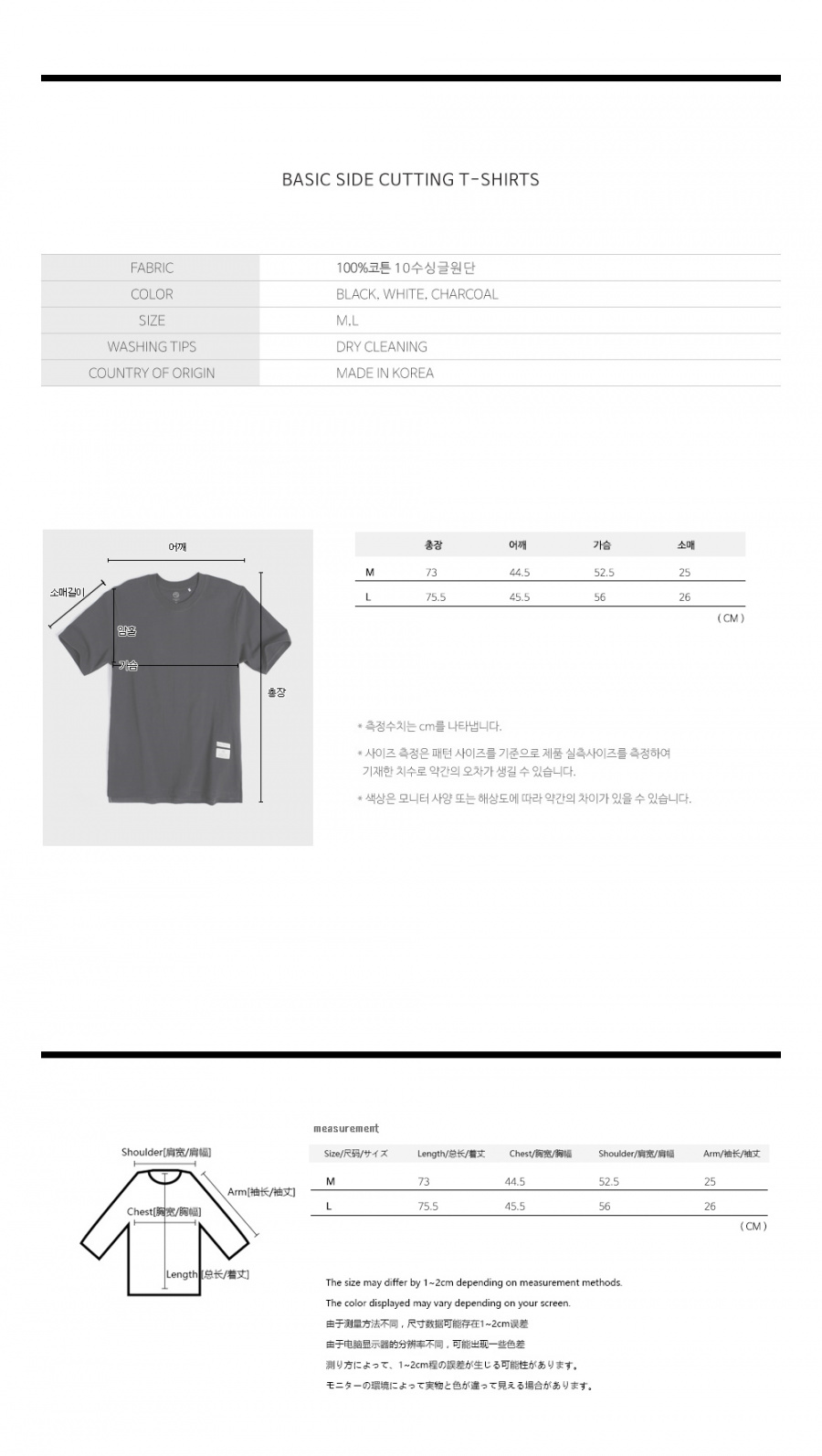 ※ 모델 사이즈의 치수는 측정 방법과 위치에 따라 오차가 발생될 수 있습니다.