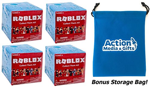 -. Title : Roblox Series 3 Action Figure Mystery Box (Set of 4) + BONUS Exclusive Action Media Storage Bag