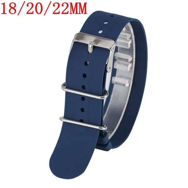 18/20/22 미리메터 고품질 팔찌 방수 군사 시계 스트랩 밴드 실리콘 교체 다이빙 블랙/블루 핀 버클