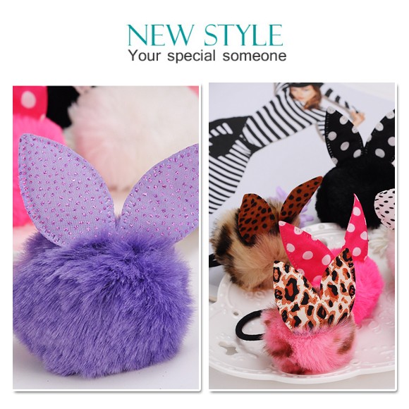 ふわふわのファーボンボンにうさ耳がついたラブリーなヘアゴムは存在感のあるルックスでヘアスタイルを可愛く見せてくれること間違いなし!