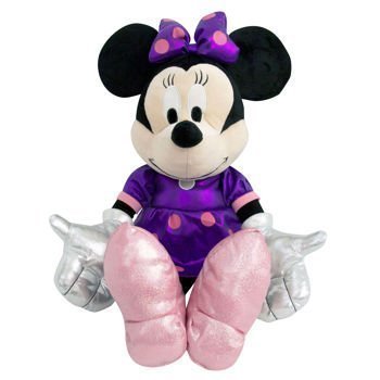 -. Feature : Invite the magic of Disney into your home with the dazzling Minnie Pillow Time Pal! / The cuddly, yet sparkly, plush brings tons of fun for everyone. / Polka Dot Metallic Purple and Pink Dress & Bow, Silver Mittens and Sparkly Pink Shoes / Dimensions: 24"x 9.5"