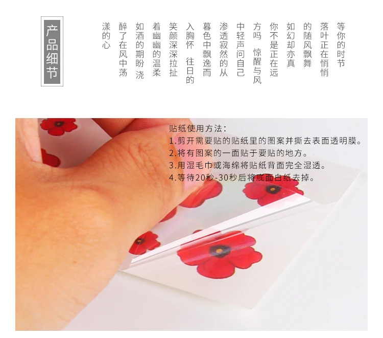 1, cut the patterns in the stickers that need to be pasted and tear the transparent film on the surface.