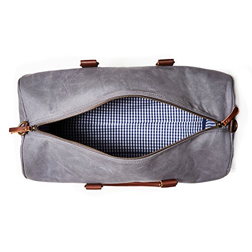 Product Description From the city commuter in a suit to the weekend yachtsmen in a bathing suit we curated the ideal travel bag to fit your own variety of excursions. A water repellent waxed canvas finish provides rugged yet functional style, while the leather handles straps bring class on top of durability. Our signature padded interior brings structure to your style as our bags were designed to hold shape even when underpacked, avoiding the sagging and bending that can ruin your entire look. Heavy 16oz waxed cotton canvas Signature padded liner for structure Leather handles straps Heavy-duty metal hardware Removable adjustable shoulder strap Two-way YKK zippers Internal storage pockets Metal feet on bottom for protection Dimensions: 21" (L) x 11.5" (W) x 12" (H) 0