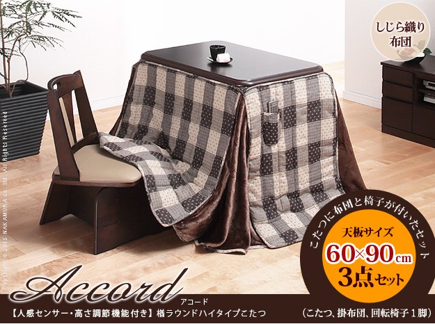 セット内容:こたつx1台、こたつ布団x1枚、肘無回転椅子x1脚