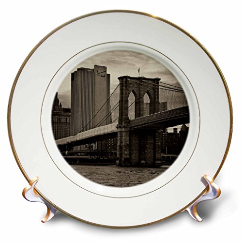 3dRose cp_98343_1 Brooklyn Bridge, East River, Part of Nyc Skyline in Sepia Porcelain Plate, 8"