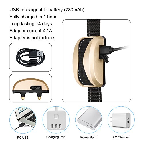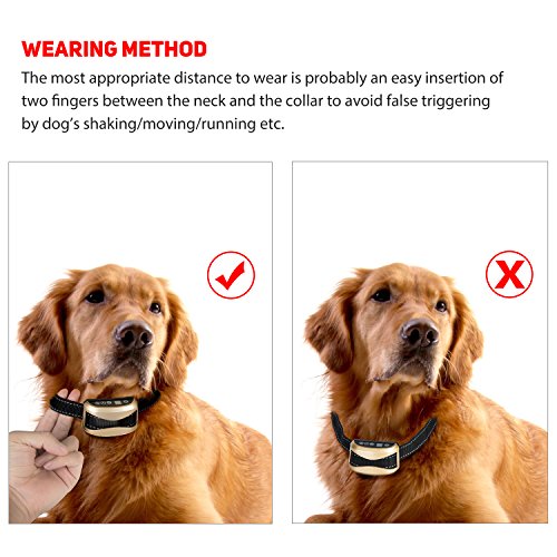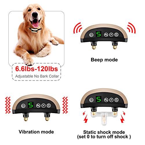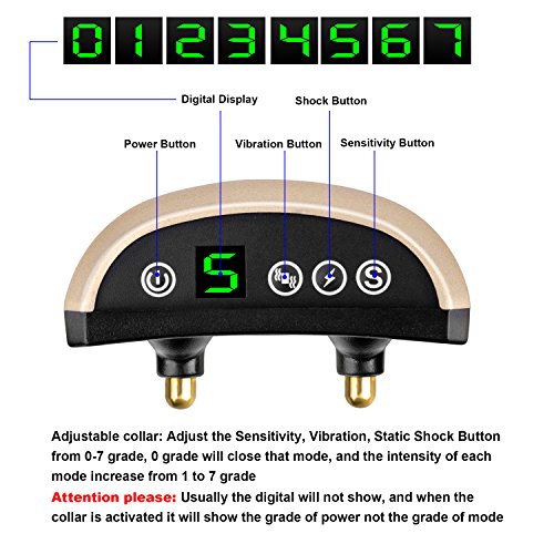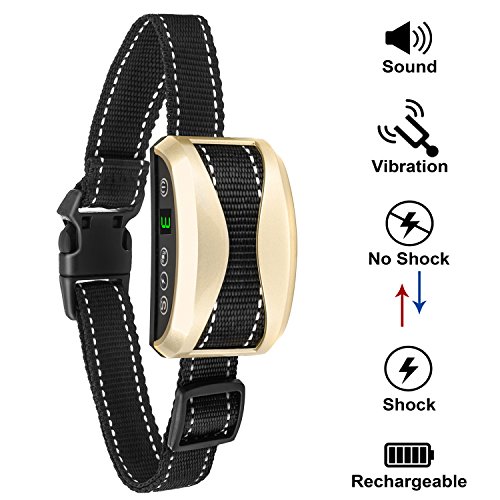 Guaranteed purchase: We offer a 100% Satisfaction Guarantee! If for any reason our product doesn't meet your standards, just send it back our way for a replacement or a full refund!? Discover What You Can Do Right Now About Your Dog's Barking Has your dog's barking gotten out of control? If you're nodding, KEEP READING! Dog Parents, Your Attention, Please: Anti-Bark Technology Is Now Perfected Here's What Makes Our Barking Silencer So Special: -- Thanks to its high-tech automatic sensor , our collar will administer one of the 3 HUMANE modes (beep, vibration, static shock), as you have preset, when your dog's (and not another dog's!) barking reaches a certain frequency. Once your fluffy friend stops barking, the collar will be deactivated. -- And what if your dog is in an emergency? Featuring an ingenious automatic protection mode, this barking deterrent will stop working if it's activated 7 times within 1 minute! --Digital display, the digital tube shows the gears of vibration ,shock and sensitivity, each mode you can feel free to switch. Usually the digital will not show, and when the collar is activated or you press the button will show . --Rainproof collar, that is suitable for all of your dog's indoor and outdoor activities. -- Safe Reflective Strip, that allows you to keep an eye on your dog even in low visibility and also can protects your dog's life from cars etc. -- CE ROSH certificated Rechargeable Battery!!! Specifications: -- Item Size: 2.6*1.5*1 inch -- Collar Length: Max 21.5 inch, Min 3.7 inch -- Item weight: 2.5 oz -- Package weight: 4.9 oz Package Includes: -- 1 x No bark receiver -- 1 x Adjustable nylon collar -- 1 x Test light -- 1 x USB link -- 1x User manual 0