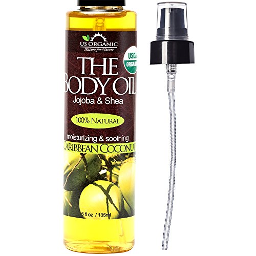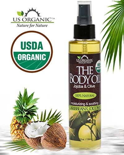 US Organic Body Oil-Blend of Jojoba and Olive Oil with fragrance of Smooth Caribbean Coconut-Vitamin E, USDA Certified, No Alcohol, Paraben,...