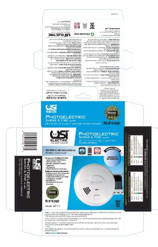 -. Binding : Tools & Home Improvement -. Brand : Universal Security Instruments -. EAN : 0042741001175 -. Feature : 3-in-1 alarm provides triple the protection with a single installation to protect against fires, carbon monoxide and natural gas / 120-volt AC/DC hardwired alarm with backup battery is suitable for houses, apartments and mobile homes / Mount the bracket to any standard wiring junction box and use the large mounting base to cover imperfections in drywall / Features a quick activation pull-tab and a front-loading battery drawer for replacement without removing the alarm from the bracket / Comes with a 7 year limited warranty -. Label : Universal Security Instruments -. Manufacturer : Universal Security Instruments -. Model : MP117 -. MPN : MP117 -. NumberOfItems : 1 -. PackageQuantity : 1 -. PartNumber : MP117 -. ProductGroup : Home Improvement -. ProductTypeName : SECURITY_ELECTRONICS -. Publisher : Universal Security Instruments -. Studio : Universal Security Instruments -. Title : USI Electric MP117 Hardwired Photoelectric Smoke and Fire Alarm with Battery Backup -. UPC : 042741001175