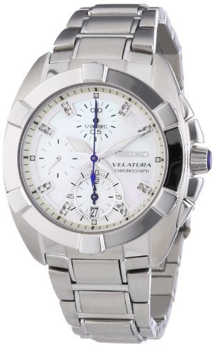 This timepiece by Seiko for men offers a stainless steel case and bracelet. The white dial includes a date window, chronograph function. This handsome watch also features a scratch-resistant hardlex crystal, a precise quartz movement, and a water resistance level of up to 100 meters (330 feet).Feature