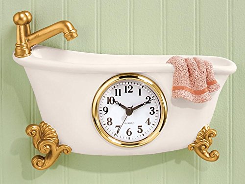 -. Brand : Miles Kimball -. Feature : 10" long x 7" high x 1 1/2" deep / Wonderfully detailed in polyresin / Uses one AA battery (not included) / Keyhole for hanging; -. Label : Miles Kimball -. Manufacturer : Miles Kimball -. MPN : 316079 -. PartNumber : 316079 -. ProductGroup : Home -. ProductTypeName : HOME_BED_AND_BATH -. Publisher : Miles Kimball -. Studio : Miles Kimball -. Title : Miles Kimball Claw Foot Style Bathtub Clock