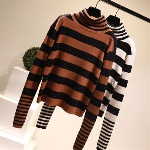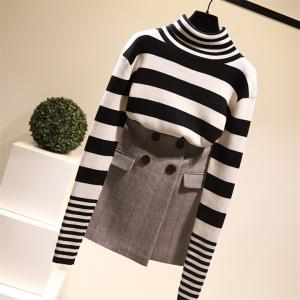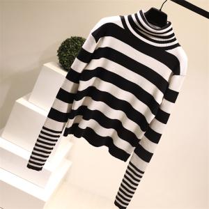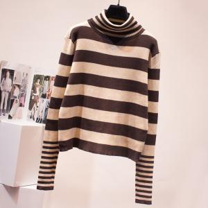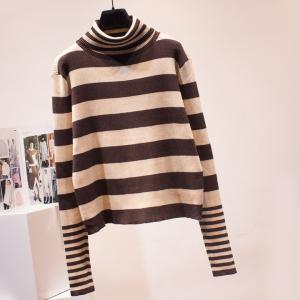 ハイネック部分と袖部分に細めのボーダー柄を入れることで、オシャレ感UP♪