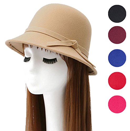 | (Roffatide)/Accessories/Hats/DIRECT FROM USA/Roffatide Womens Woolen Long Strap Bucket Hat Cloche Top Hat Winter Fedora Bowler Hat 6 Colors |