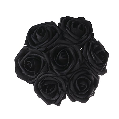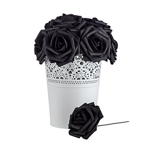 Dinopure Wedding Bouquet 50pcs Artificial Flowers White Real Touch Artificial Roses for Bouquets Centerpieces Wedding Party Baby Shower DIY Decorations (black)