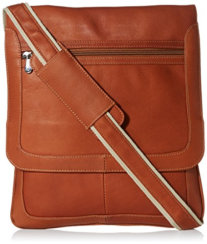 Piel Leather Small Vertical Messenger, Saddle, One Size