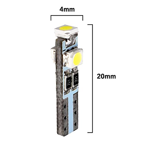 ?Plug and play, simply remove the old one and plug these in,?easy to replace Standard?Neo Wedge LED Bulb?T5. ?For replacement of any T5 Wedge type socket that measures?4-5mm?(please measure before purchase). ?Low Heat Generated / Dust and Shock Proof. ?To be used for 12VDC (For Automotive Use) ?Bulb Cross-reference Information ?Long-lasting working lifes,?50000-60000 hours. ?Low power consumption, save your power supply. ?Suitable for?instrumental panel for instrument Panel indicators, Gauge Cluster, Check Engine indicator, Highbeam indicator, Shifter Lights.