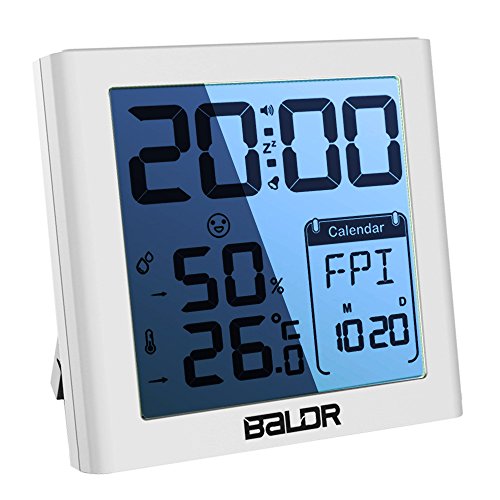 -. Feature : 使い心地がいい:温度計&湿度計&時計&目覚ましアラーム&日付の5機能をワンに集めたアイテムです。画面を見なくても時間の把握できます。 / 配線工事不要:わずらわしい設定は必要ありません。電池(単4形乾電池2個)を入れるだけで測定を開始します。 / 置き式/壁掛けの2WAYタイプ:卓上スタンドと壁掛け用のフック穴が付、卓上置きにも壁掛けにも対応できます。パネルなどと並べて壁に掛けても絵になるし、デジタルフォトフレームなどと並べてリビングルームに置いても違和感はないです。家庭だけでなくオフィスや店舗用としてもお勧めできる温湿度計です。 / 小型タイプー:小さくて邪魔にならず、文字は見やすい大きさで、遠くから見ても確認しやすいです。出産祝いや新築祝いのちょっとしたプレゼントにもおすすめです。 / 湿度と温度を同時に測定可能:温度測定範囲32℉~122℉(0~50℃)/湿度測定範囲20%~95%。家族の健康管理に、インフルエンザや風邪などの予防対策に、お部屋の乾燥チェックでお肌の潤いを保つのに、他にも、カビ対策や熱中症対策などに役立ちます。
