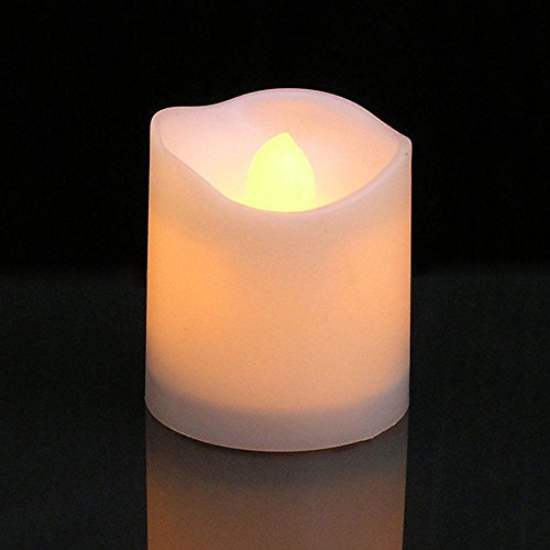 Battery-powered (battery included & installed) amber color LED tea light candles ideal for accent decorations for holiday celebrations, wedding ceremonies, special occasions