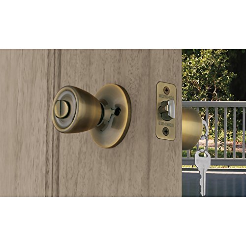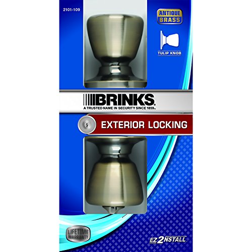 -. Title : Brinks 2101-109 Tulip-Style Keyed Entry Door Knob, Antique Brass