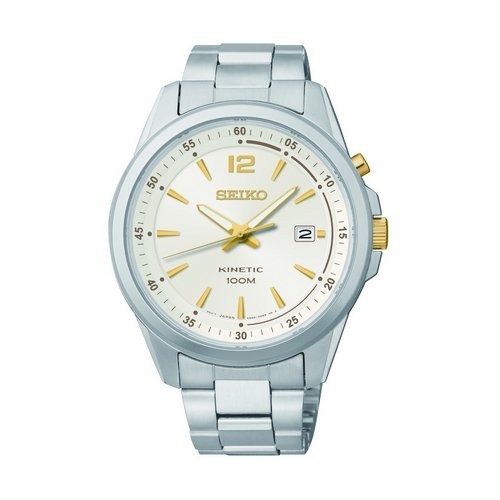 -. Feature : Seiko Kinetic Movement / Stainless Steel Case / Stainless Steel Band / Push Button Clasp / 100 Meters Water resistance