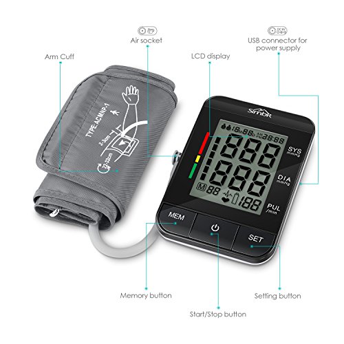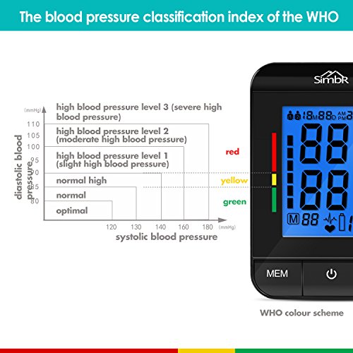 -. Title : SIMBR Upper Arm Blood Pressure Monitor with Irregular Heart Beat Detect and FDA Approved, Large Display, 2 Users mode