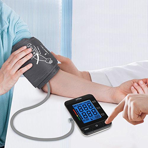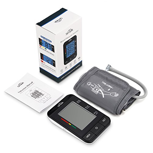 -. Feature : Couldn't Be Easier To Operated! - Right out of the box, install the batteries, plug in the cuff, set the date and time, and hit start, the pump will start to work automatically. / Large LCD Display - The large number size makes it easier for the elderly to use or anyone that would have trouble reading a BP monitor. Blue backlit enables you to see the monitor result at night. / Two Person Model - 2 users model allows you to share the monitor with your family members, or test BP in both your arms if you like. It saves 90 readings per user. It also has an added benefit of an abnormal heart beat monitor which alerts you to possible irregular heart beats. / Average Reading - it can take three readings taken within the last 10 minutes and then give you the average. Just press the "MEM" button and the last 3 average measured values will be shown on the display. / Quality Guarantee - CE, ROHS and FDA approved. 18 months warranty and friendly customer service ensure your purchasing.