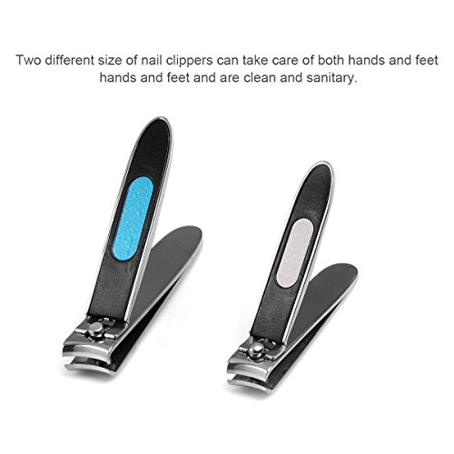 Two different size of nail clippers can take care of both hands and feet hands and feet and are clean and sanitary.