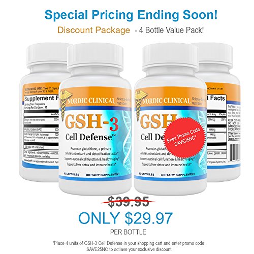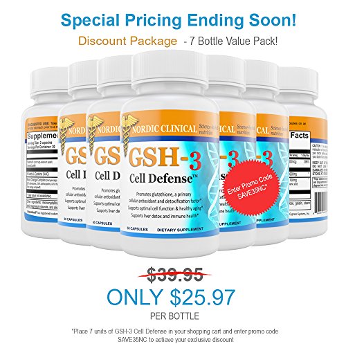 -. Binding : Health and Beauty -. Brand : NORDIC CLINICAL -. Feature : ★PROMOTES GLUTATHIONE for unsurpassed cellular protection against free radicals. GLUTATHIONE is an antioxidant which is stronger than popular ingredient CoQ10. / ★RESTORE YOUTHFUL HEALTH & VITALITY with our number one health formulation by Dr. DeSilva, with GSH-3, your cell is bathed in Antioxidants-boosting glutathione. Oxygen can cleans your sells of illness-causing waste. Fish oil doesn't do this! / ★DETOX YOUR ENTIRE BODY. The average person has 100 toxins in their body. Glutathione can be stronger than any detox agent on the market today. Support the body's natural detoxifying processes by ordering GSH-3 Cell defense today. / ★DR. DeSilva APPROVED! A highly respected and sought after physician with over 30 years of clinical practice. He is a practicing internist at the Raritan Bay Medical Center in Perth Amboy, NJ, where his integrative approach combines the best of eastern and western medicine / ★★★BUY MORE AND SAVE MORE! - We love our customers and want them to have the most of our pain relief cream. If you buy 4 or more of this pain relief cream muscle, you can immediately save 25% at checkout. Just enter promo code SAVE25NC. Buy for friend or loved one and save on this pain relief cream for back. -. IsAdultProduct : 0 -. Label : Nordic Clinical -. Manufacturer : Nordic Clinical -. MPN : NORCGSH -. PackageQuantity : 1 -. PartNumber : NORCGSH -. ProductGroup : Health and Beauty -. ProductTypeName : HEALTH_PERSONAL_CARE -. Publisher : Nordic Clinical -. Studio : Nordic Clinical -. Title : Nordic Clinical's GSH-3 Cell Defense, (60 capsules, 30Day supply).Antioxidants and Detoxifier with NAC, ROC, SelenoExcell. Promote glutathione, for Protection against free radicals. Boost Antioxidant.