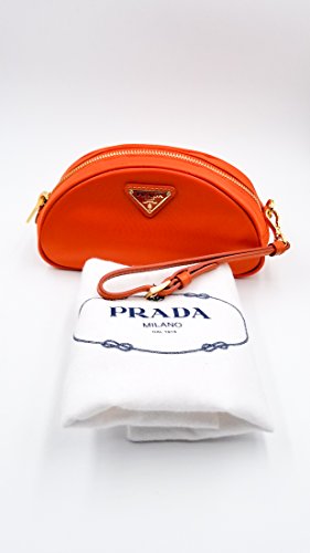 Studio : ARIS Publisher : ARIS Binding : Misc. Product Description Authentic Prada Nylon and Saffiano Leather Cosmetics case. Wristlet cosmetic bag can be used as a small clutch purse. Golden tone hardware with Prada engraving. Prada lined interior with zippered compartment and Prada plate on both interior and exterior of bag. Comes with authenticity cards, paperwork and original dust bag. 0