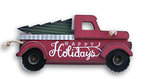 Rustic Truck Shaped Happy Holidays Christmas Decor Sign with Jute Hanger - 14 x 7 Inches