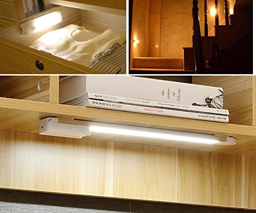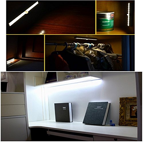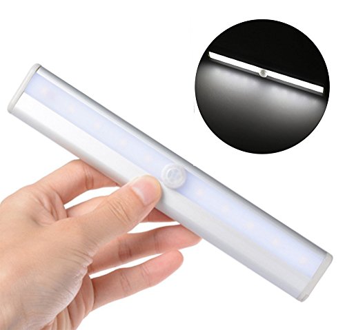 Motion Sensor Wardrobe Light, Wireless Battery PIR Activated Stick-on 10 LED Lamp, Cabinet Cupboard Closet Stairway Camping Emergency Night Lighting, Removable Magnetic Strip Instant ON/OFF