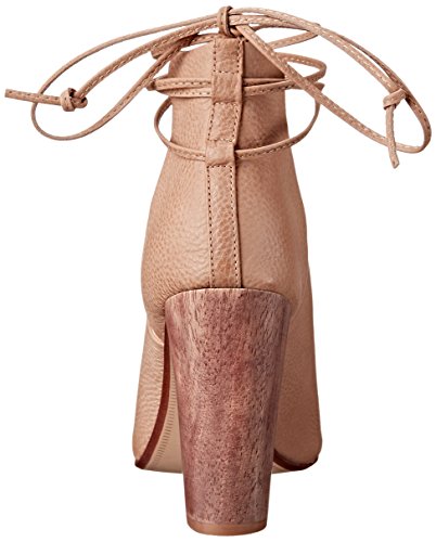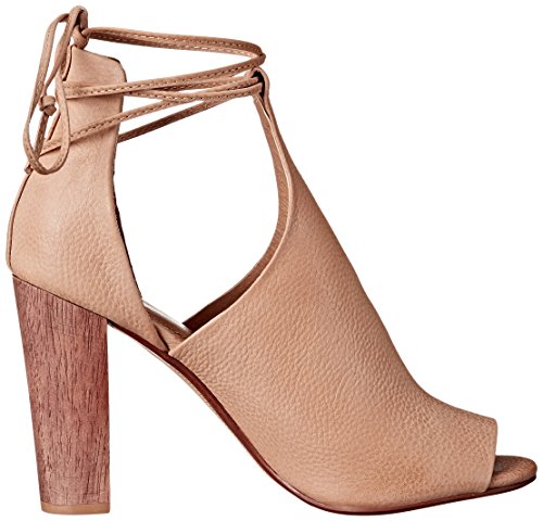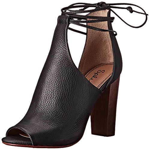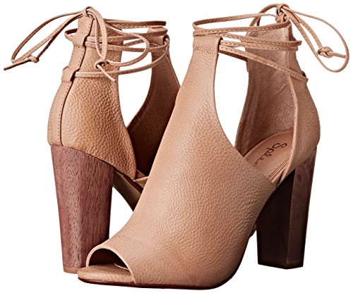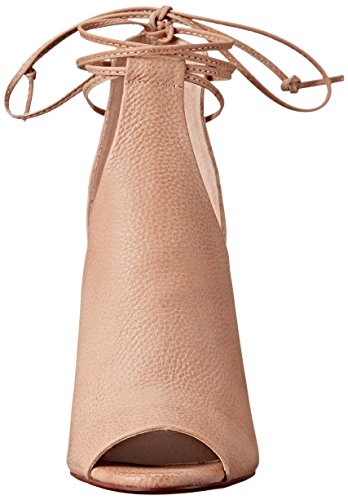 Peep-toe heeled sandal with pebbled-leather bootie upper featuring lacing at ankle