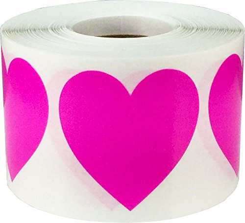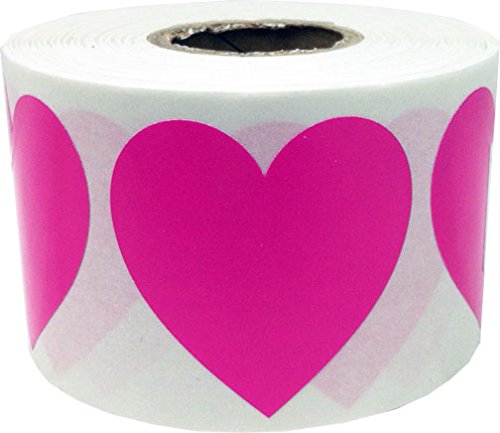 InStockLabels Heart Stickers 1 1/2 Inch 500 Adhesive Stickers, Hot Pink