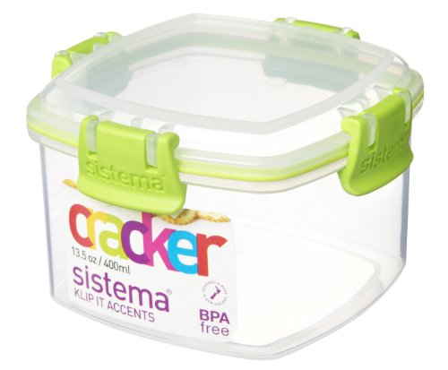 Sistema 400ml Polyproplene Cracker Container Clips and Seals,Lime/ Aqua/ Purple/ White